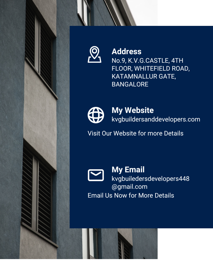 KVG Builders and Developers is recognized as one of the most trusted real estate companies in Bangalore, offering a perfect blend of quality construction, prime locations, and customer satisfaction. With years of experience in the industry, they have successfully delivered residential and commercial projects that meet the aspirations of modern buyers and investors. Their focus on transparency, timely delivery, and innovative design has made them a preferred choice for those seeking reliable property solutions in the city.